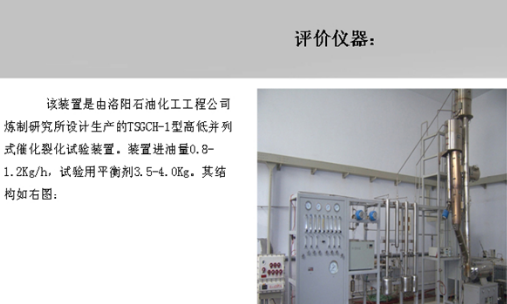 我公司使用洛陽石油化工工程公司煉制研究所設(shè)計(jì)生產(chǎn)的 TSGCH-1 型高低并列式催化裂化試驗(yàn)裝置(小型提升管)